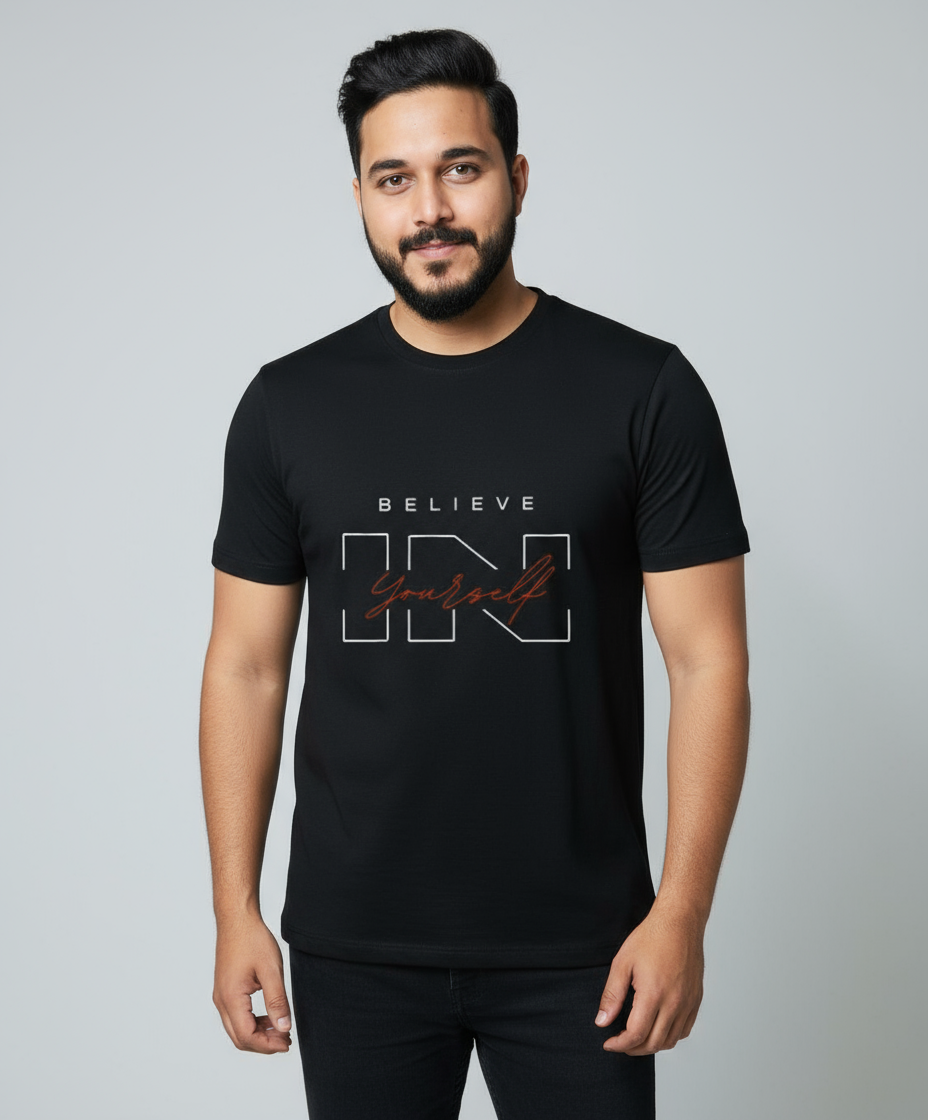 Clean “Believe in Yourself” message with crisp line art for understated style