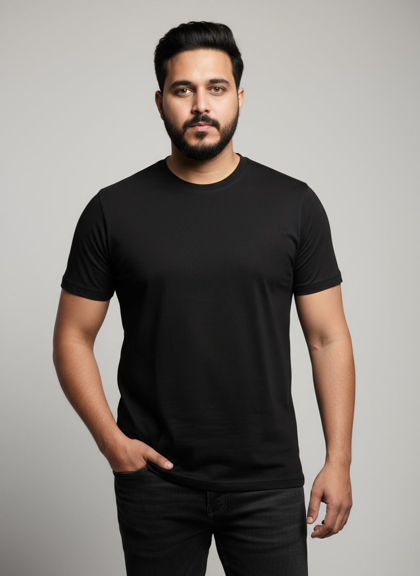 Elevate your everyday style with this timeless plain black t-shirt. Made from soft, breathable cotton, it ensures all-day comfort while keeping you effortlessly stylish. Its versatile design makes it perfect for layering or wearing on its own, whether you’re heading out casually, to work, or just relaxing at home. Durable, easy to care for, and a must-have staple in every wardrobe.