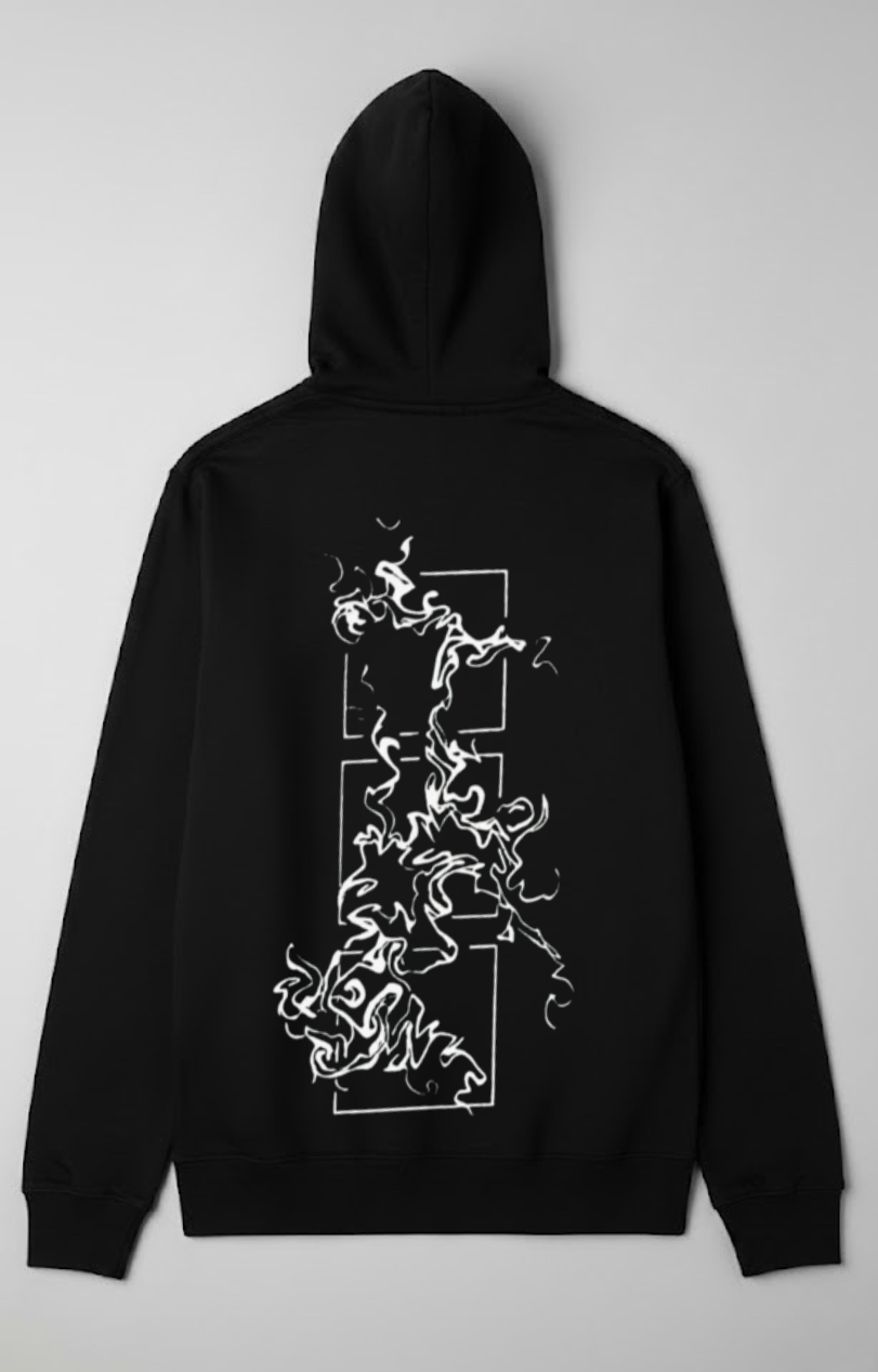 Unleash bold style with this Monochrome Smoke Graphic Back Hoodie. Featuring a striking white smoke illustration trailing through geometric outlines, this hoodie adds instant edge and intrigue to your streetwear collection. Crafted from soft, durable fabric, it’s perfect for making a statement while staying comfortable in any setting.